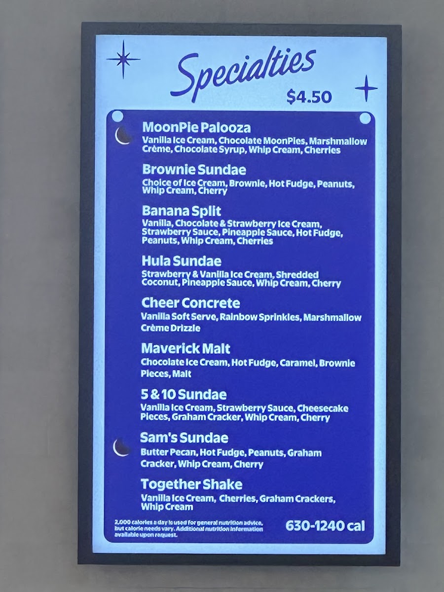 Indulge your sweet tooth with classic treats like shakes and malts for $3.50, or experience a blissful float or ice cream soda at only $2.25. The toppings range from Gummy Bears to delectable Hot Fudge, allowing you to create your perfect dessert masterpiece.